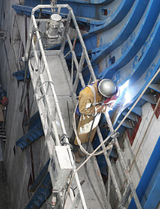 高空焊接項目施工難度大,風險性高,因此做好安全保護工作是非常重要的,工人佩戴防墜器進行安全保護,防止發生高空墜落。